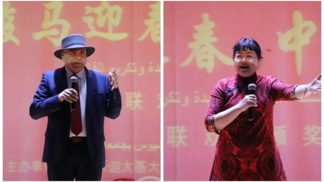 联欢会伊始,孔子学院外方院长 Hichem Messaoudi 先生与中方院长吴杨女士分别致辞。两位院长向长期以来关心和支持孔子学院发展的各界朋友表示衷心感谢,并向全体中文学习者及嘉宾致以诚挚的新春祝福。