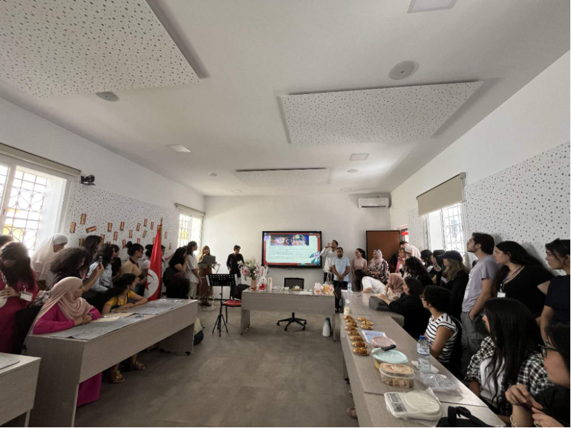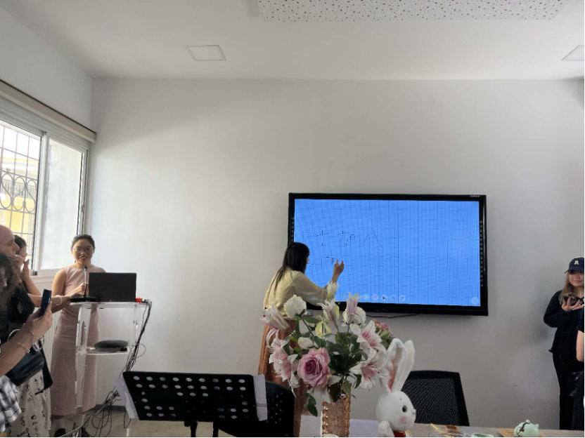 年中秋节文化体验活动。孔子学院中方院长茹昕,孔子学院公派教师姜肖寒、魏炫璇,志愿者教师王巧、罗志娇、郝帅楠、谷巍,大外在突留学生以及突尼斯高等语言学院中文系学生、青少年汉语学习者等百余人参与活动。
