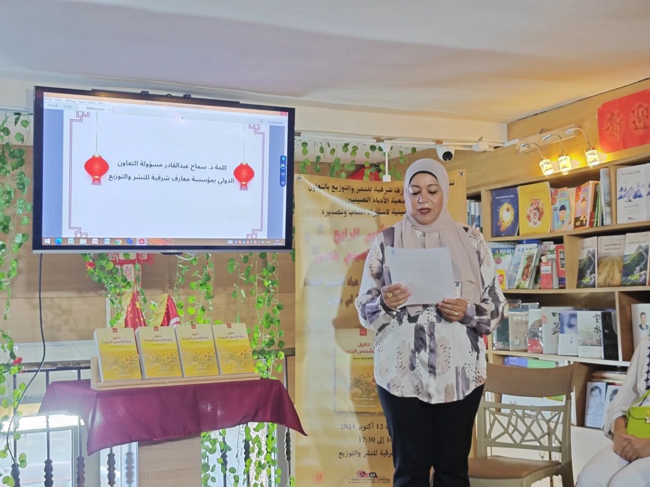 2024年10月12日,突尼斯迦太基大学孔子学院参加了由突尼斯东方知识出版社举办的突尼斯“中国文学读者俱乐部”文学沙龙活动——阅读李娟作家《遥远的向日葵地》阿拉伯文版读后感。