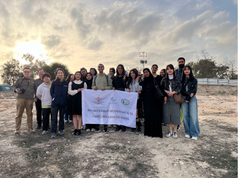 2024年11月28日下午,由迦太基大学孔子学院公派教师姜肖寒和志愿者教师谷巍带队,20名迦太基大学高等语言学院中文系的学生前往突尼斯本阿鲁斯森林遗址的考古发掘现场进行考古体验活动。