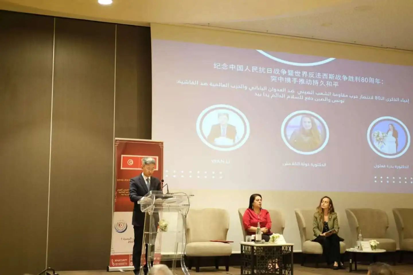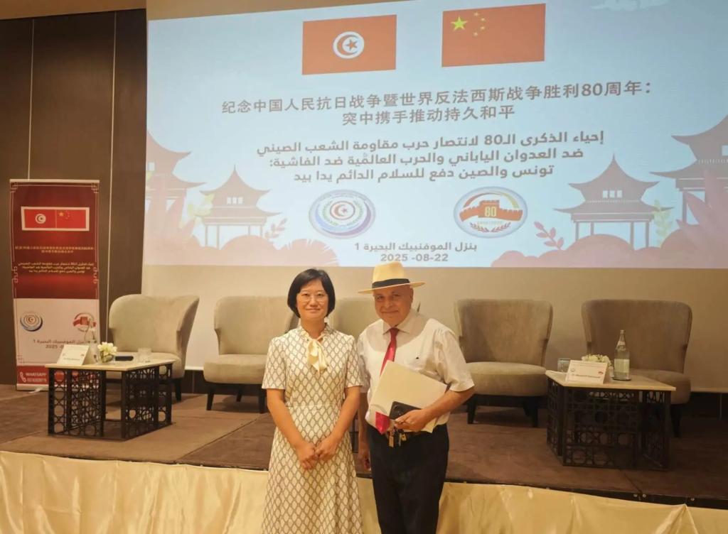 2025年8月22日,“纪念中国人民抗日战争暨世界反法西斯战争胜利80周年:中突携手推动持久和平”研讨会在突尼斯市成功举行。研讨会由中国驻突尼斯大使馆和突尼斯国际军事与安全战略研究中心联合主办,中突专家学者、突政党负责人、友好人士、退伍军人代表等70余人出席。迦太基大学孔子学院中外方院长受邀出席。