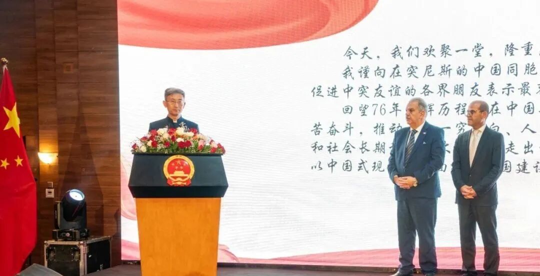 2025年9月26日,中国驻突尼斯大使馆隆重举行庆祝中华人民共和国成立76周年招待会。中国驻突尼斯大使万黎,突政府代表青体部长姆拉利、装备和住房部长祖瓦里,总统府、外交部等部门官员,国民议会、全国省区委员会议员,军方高级代表以及各界友好人士,各国驻突使节,在突中资机构、华人华侨等500多人出席。迦太基大学孔子学院精彩节目亮相此次招待会。