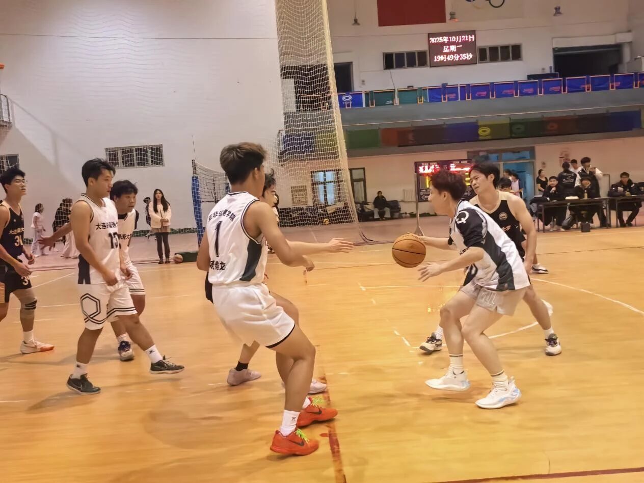 2025年10月21日晚,亚非语言学院男篮一队对战软件学院23级二队。比赛开始前,双方队员提前到达比赛场地进行赛前训练和战术布置。