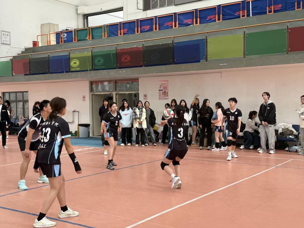 比赛伊始,亚非语言学院排球队首局表现抢眼,凭借多记“发球杀”直接得分,虽最终以22:25暂时落后,但队员们展现出了顽强的斗志。