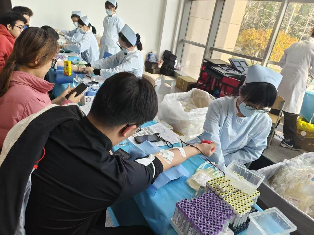 从信息登记、健康检测到采血完成,整个献血流程高效而温馨。阳光透过大厅玻璃,洒在一张张年轻而坚定的脸庞上,映照出他们的热忱与奉献。在各方人员的悉心关怀与配合下,本次献血活动得以顺利进行。