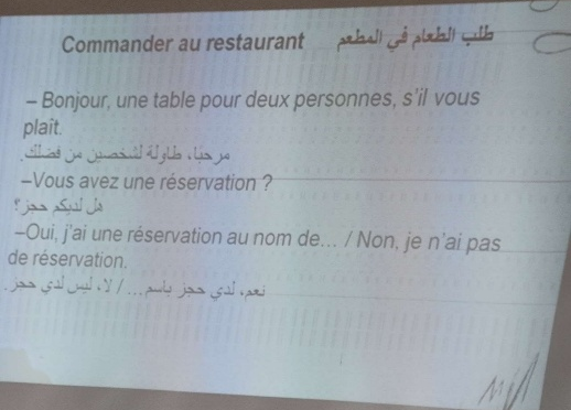 不过,说到学习,那真是痛并快乐着。老师一进教室就全程阿语“轰炸”,头一个月我基本上是“听力瘫痪”状态。最崩溃的是语法课,阿拉伯语的动词变位复杂得像迷宫,阳性阴性、单数复数、过去现在未来……笔记本上画满了连自己都看不懂的树状图。但我有个“救命法宝”——用手机快速查单词,简直像在黑暗里突然摸到了开关。在课堂上,我发现老师最爱让我们模拟市集砍价、角色扮演医患对话,最搞笑的是练习那个最难发的“ح”喉音,整个屋子都是清嗓子的声音。我们不仅学习阿语,有时候老师会教授我们法语,这也是一个难关啊。虽然最初的日子像是沉在语言的深水区,只能捕捉零星的光亮。然而几个月后的某个清晨,忽然发现自己能听懂市场小贩玩笑的弦外之音,能在咖啡店里准确点上一杯不加糖的薄荷茶。那些曾如密码般的喉音与卷舌音,渐渐在唇齿间找到了位置。法语词汇像意外的礼物,时不时从老师的讲解中掉落——语言的边界在这里变得柔软。渐渐的,我发现记住了很多的单词。我不再是害怕,回避,而是开始尝试理解,和当地人交流。
