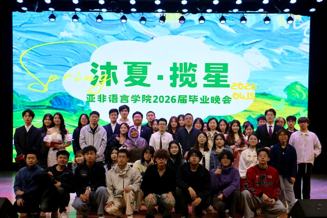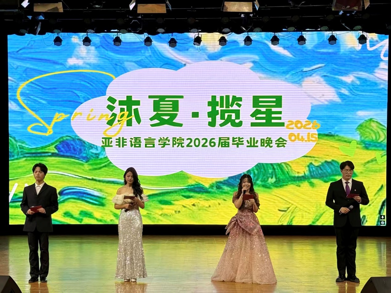 2026年4月15日下午,“沐夏·揽星”主题毕业晚会在大学生活动中心(启航楼)一楼礼堂举办。亚非语言学院党总支书记符霜、院长丁杨、辅导员陈汝沛、印度尼西亚语教研室教师杨景、外籍教师迎悦,亚非语言学院各年级学生及其他兄弟学院学生参加本次晚会。四载春秋流转,岁月沉淀下无数温暖与闪光,青春在朝夕相伴里写下滚烫篇章。愿此去沐风而行,揽星而上,前路坦荡,光芒万丈。