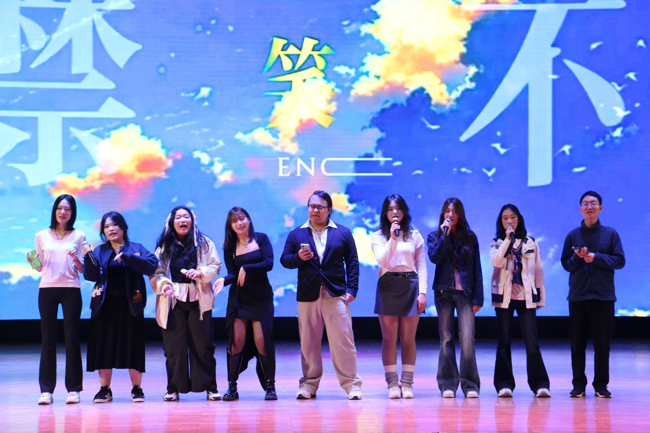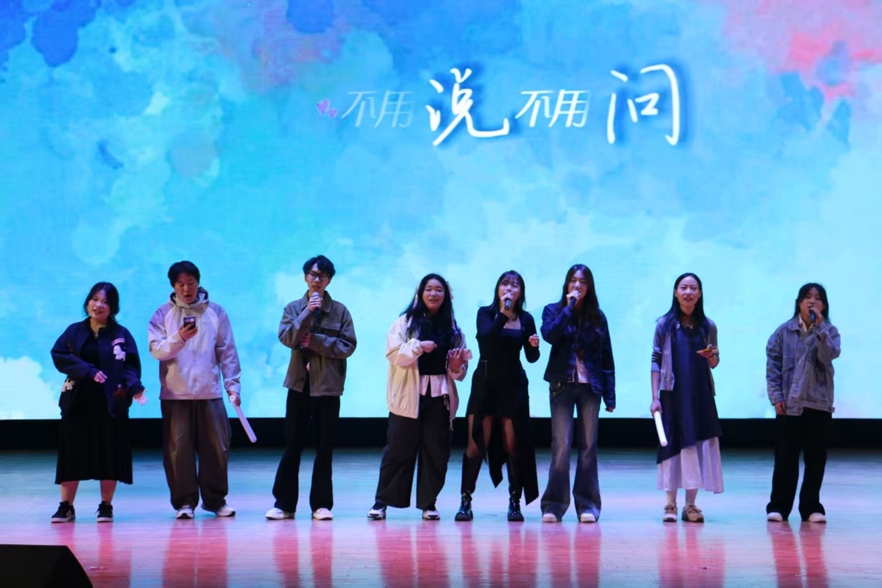 2401班刘子僮与德语学院李桐瑶共同演唱的歌曲《大鱼》,将现场的氛围推向温柔的高潮,观众们静静聆听,沉醉在悠扬婉转的旋律中,掌声与赞叹声此起彼伏。