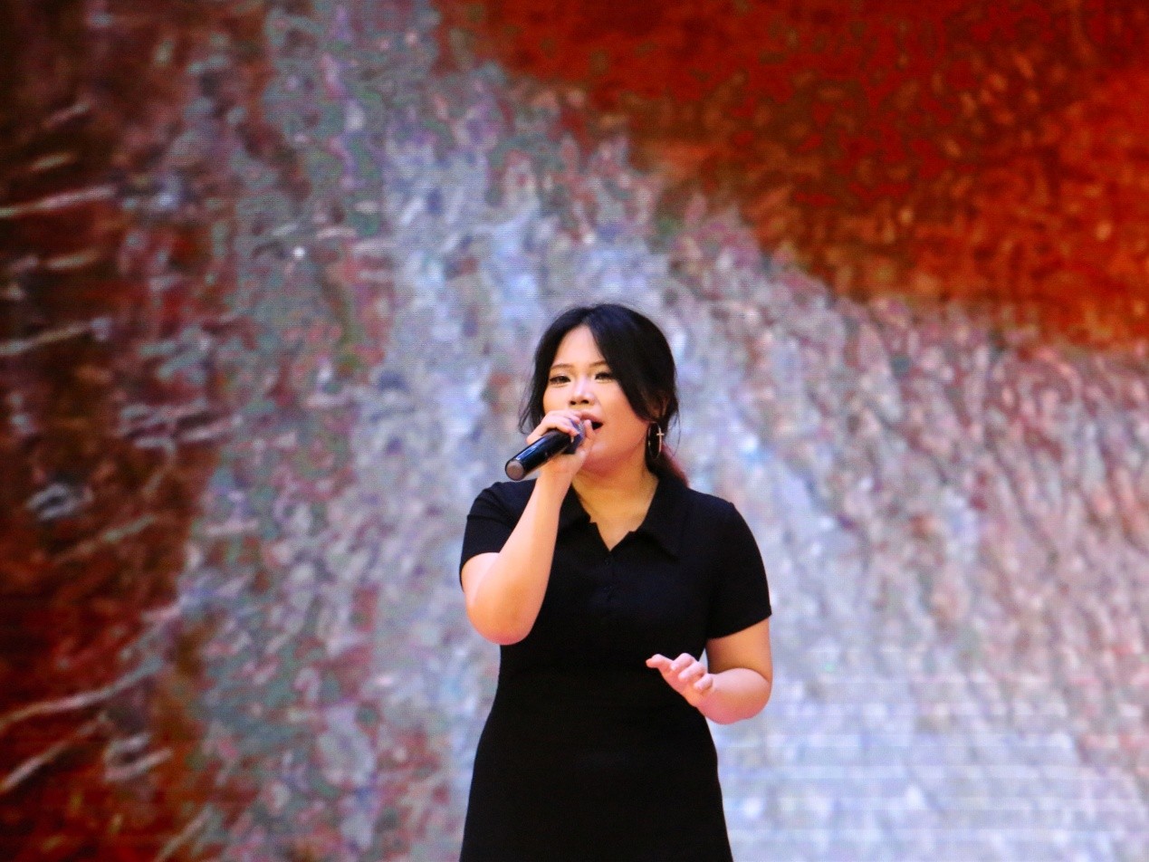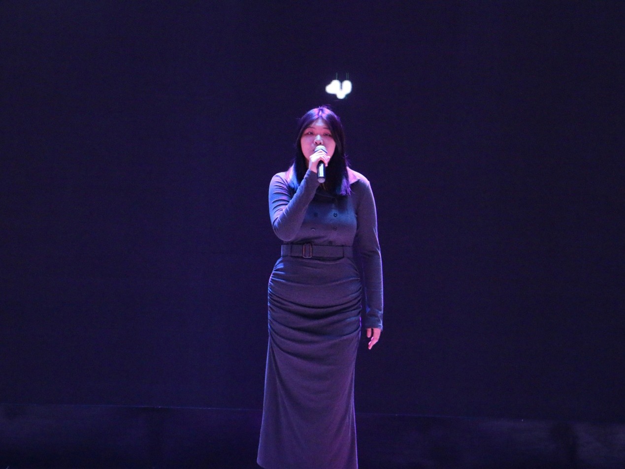 2403班褚翊茹演唱的歌曲《泡沫》,将现场氛围带入深情而细腻的意境,观众们静静聆听沉浸其中,掌声与感动在会场久久回荡。