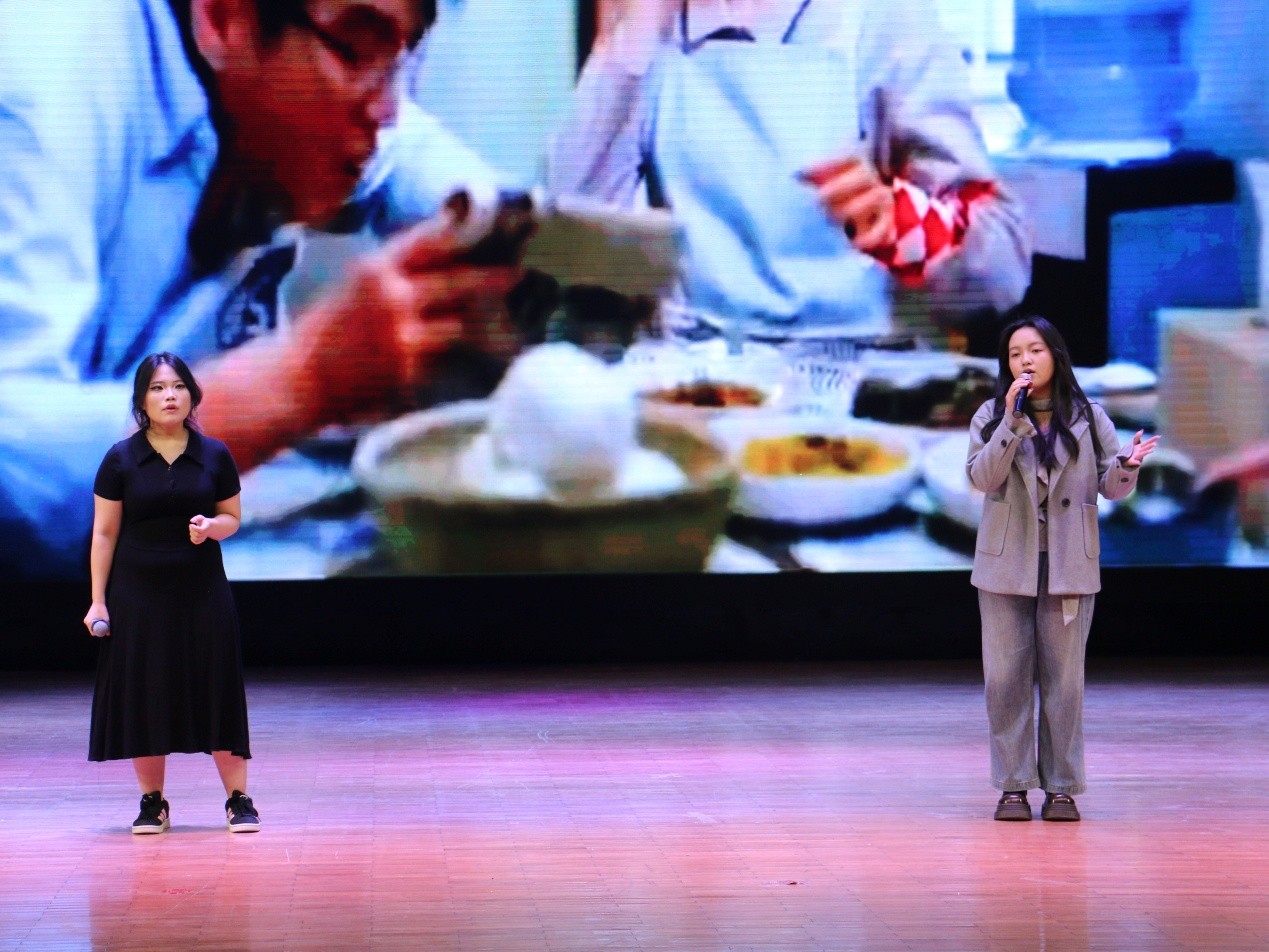 2201班党嘉祺、2303班杨馨然联袂演唱《是妈妈是女儿》,以温柔歌声诉说母女情深,唱出亲情里的理解与牵挂,温暖动人。