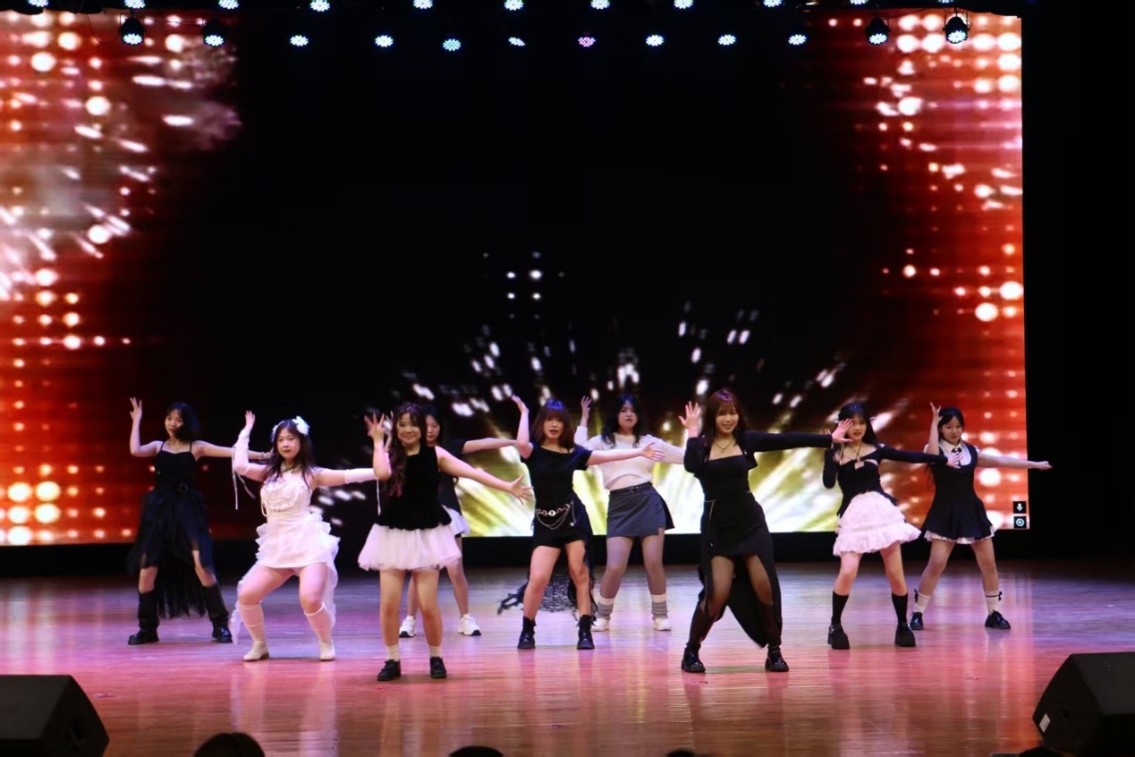 2202班盛警仪、2203班石怡宁、2304班牛米畦、2403班宋金泽、闫佳美,2501班张珈瑜、孙意涵,2502班王姝伟、2505班魏萱儿带来舞蹈《One Spark》,以活力满满的灵动舞姿与蓬勃朝气,点燃全场热烈氛围,尽显青春耀眼姿态。